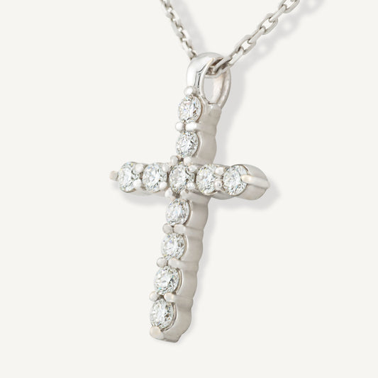 18K White Gold Divine Diamond Cross Necklace with Natural Diamonds