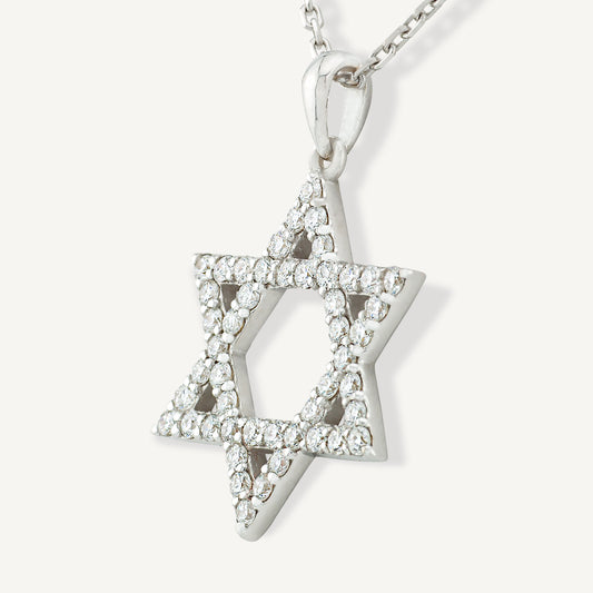 18K White Gold David’s Star Sparkling Diamond Necklace with Natural Diamonds