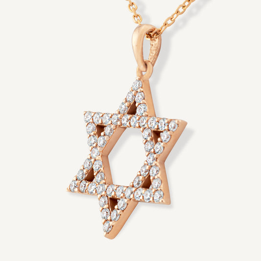 18K Rose Gold David’s Star Ethereal Necklace with Natural Diamonds