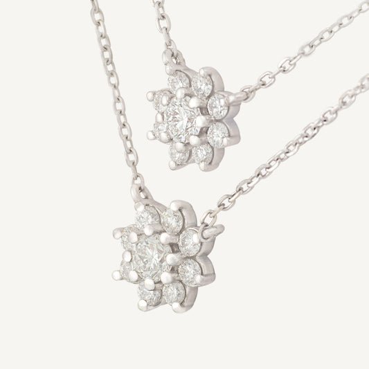 18K White Gold Diamond’s Duet Halo Necklaces with Natural Diamonds
