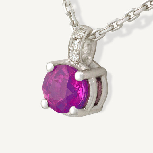 18K White Gold Crimson Flame Ruby Necklace with Natural Rubies and Diamonds