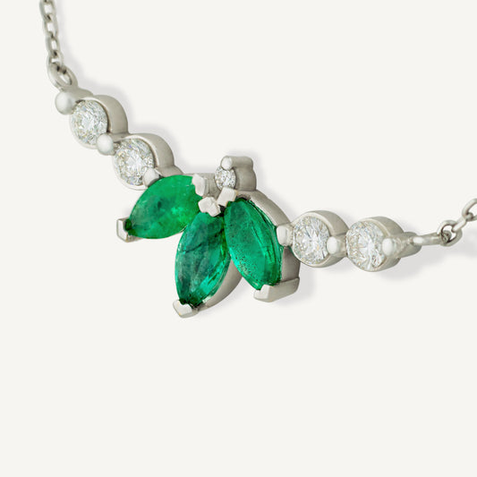 18K White Gold Evergreen Emerald Symphony Necklace with Natural Green Emeralds and Diamonds