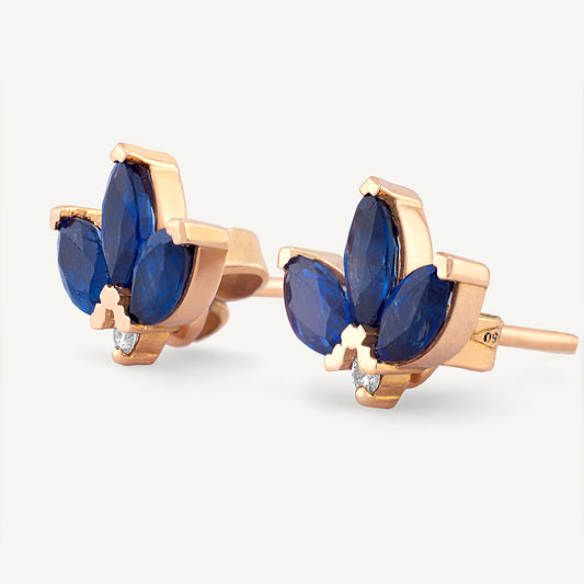 18K Rose Gold Midnight Sapphire Stud Earrings with Natural Blue Sapphires and Diamonds