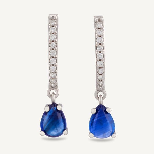 18K White Gold Midnight Sapphire Earrings with Natural Blue Sapphires and Diamonds