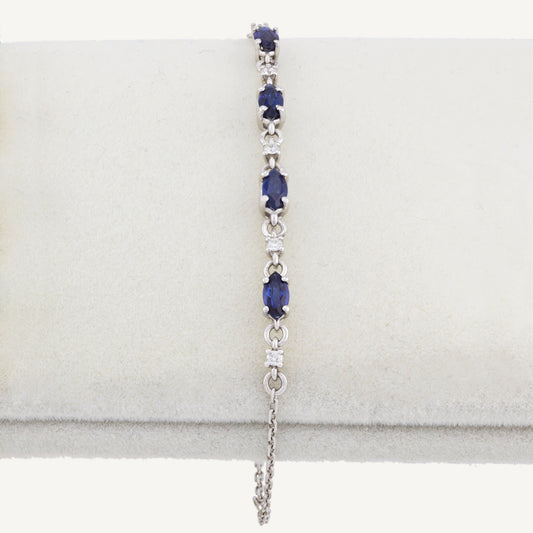 18K White Gold Midnight Sapphire Bracelet with Natural Blue Sapphires and Diamonds