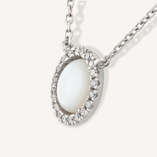 18K White Gold Mother of Pearl Necklace with Natural Mother of Pearl