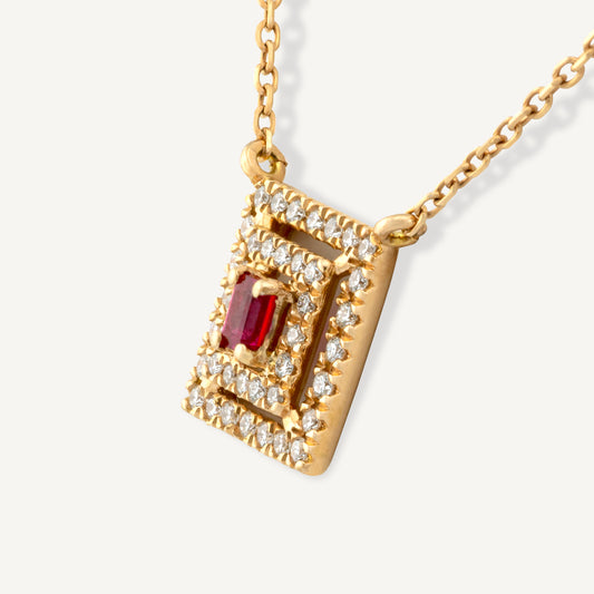 18K Rose Gold Ruby Sparkle Frame Necklace with Natural Red Rubies and Diamonds