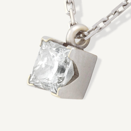 18K White Gold Princess Cut Diamond Necklace with a Natural 1 Carat Diamond