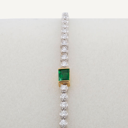 18K White Gold Jeweled Evergreen Emerald B Bracelet with Natural Emeralds