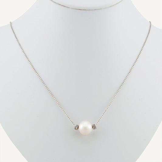 18K White Gold Diamond Dewdrop Pearl Necklace with Natural Diamonds and Pearls