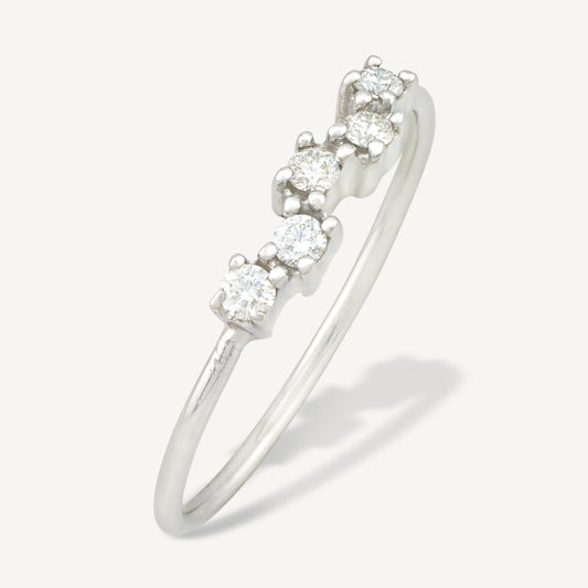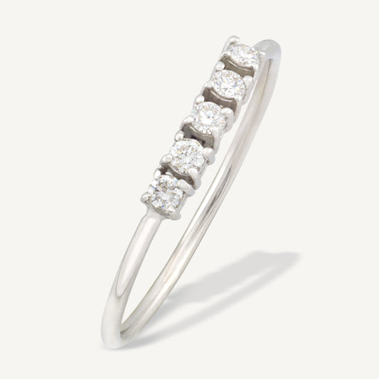 18K White Gold Five-Stone Diamond Ring with Natural Diamonds