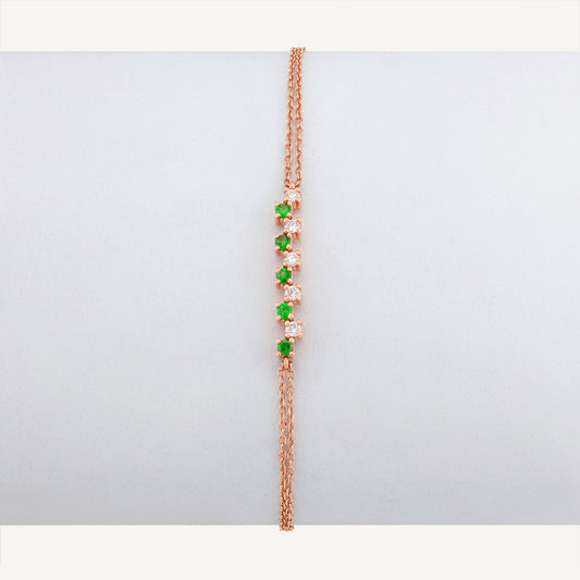 18K Rose Gold Emerald Melody Bracelet with Natural Emeralds and Diamonds