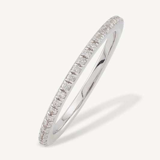 18K White Gold Glimmery Diamond Band Ring with Natural Diamonds