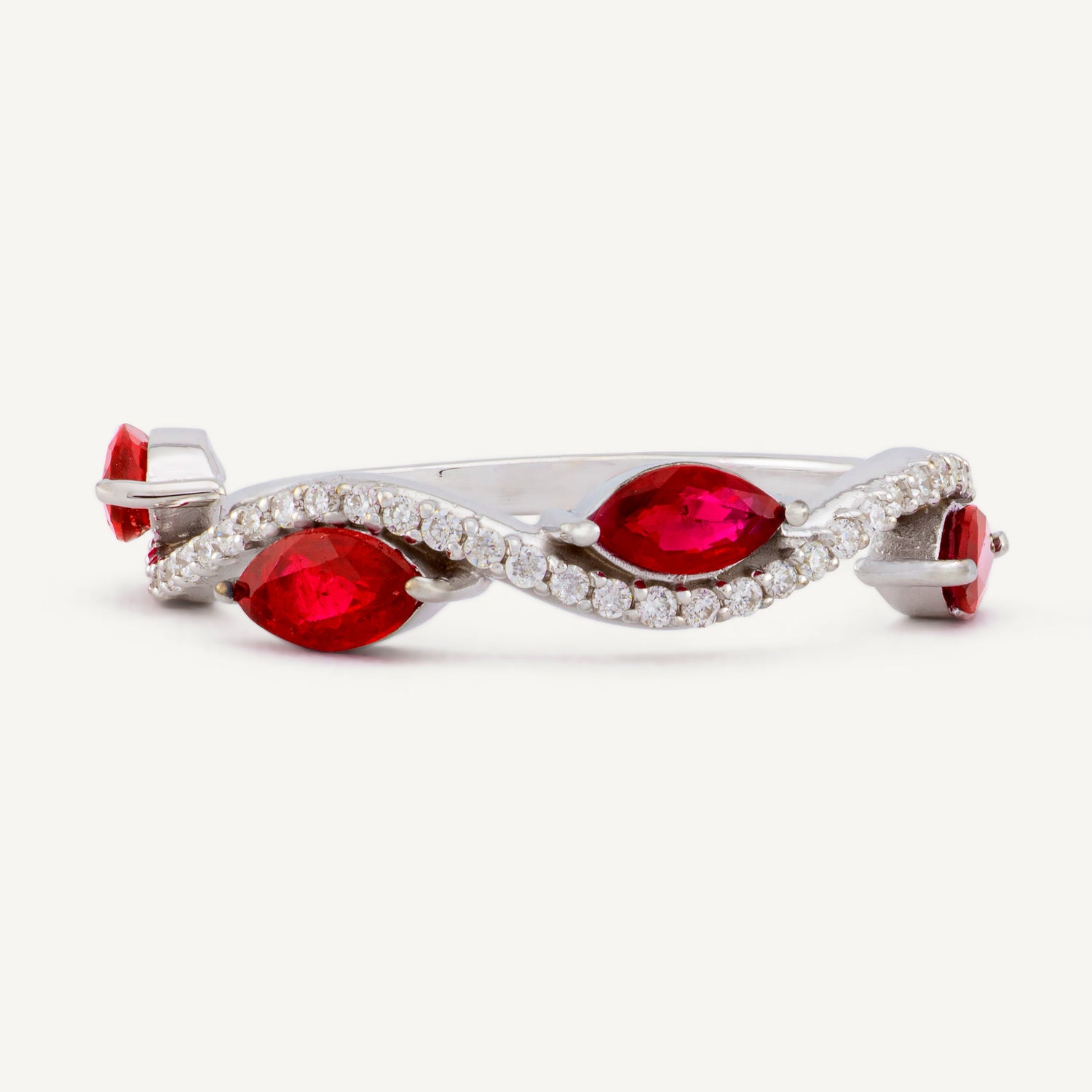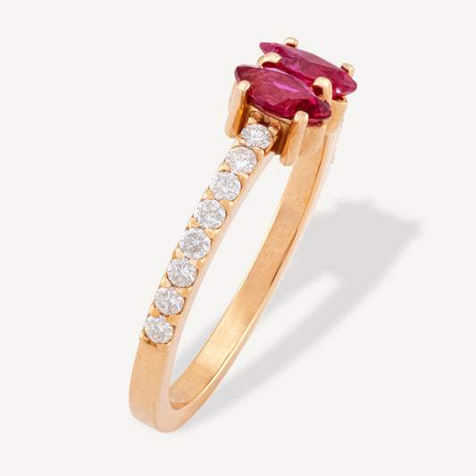 18K Rose Gold Twin Ruby and Diamond Ring with Natural Rubies and Diamonds