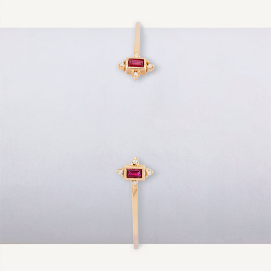18K Rose Gold Ruby Open Cuff Bracelet with Natural Rubies and Diamonds