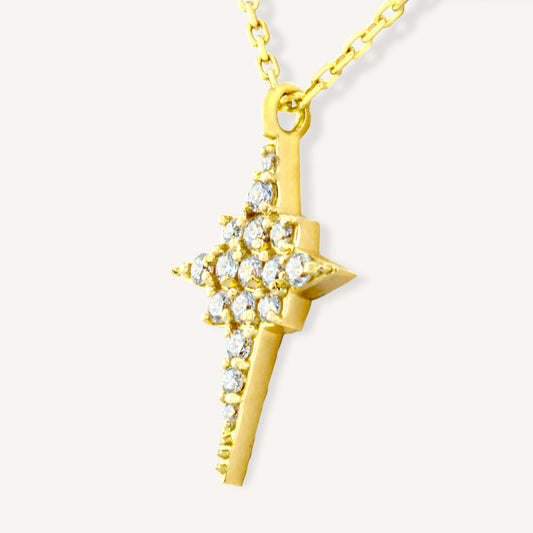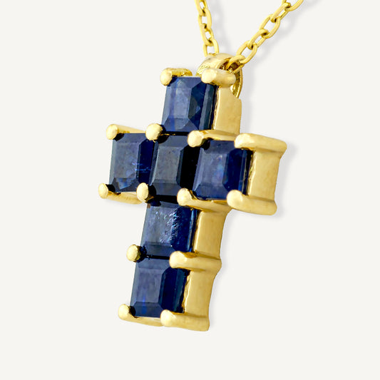 18K Yellow Gold Midnight Sapphire Cross Necklace with Natural Sapphires