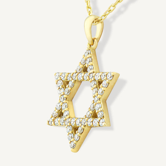 18K Yellow Gold David’s Star Ethereal Necklace with Natural Diamonds