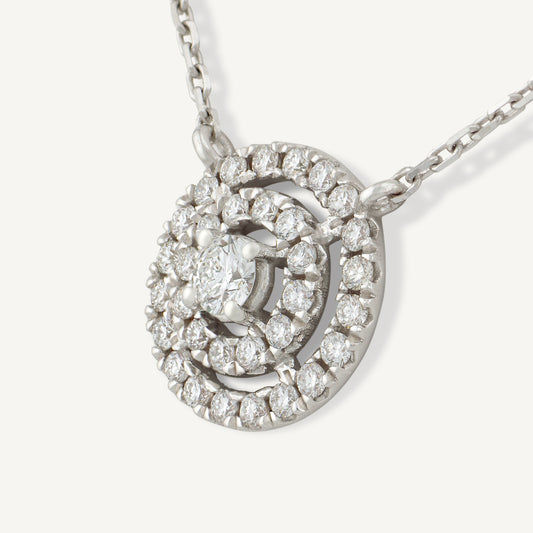 18K White Gold Diamond’s Duet Halo Necklaces with Natural Diamonds