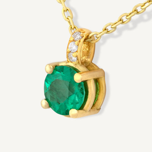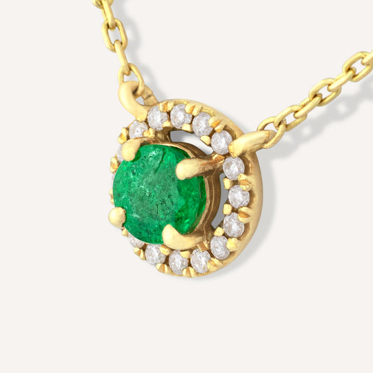 18K Yellow Gold Emerald Shine Necklace with Natural Green Emeralds and Diamonds