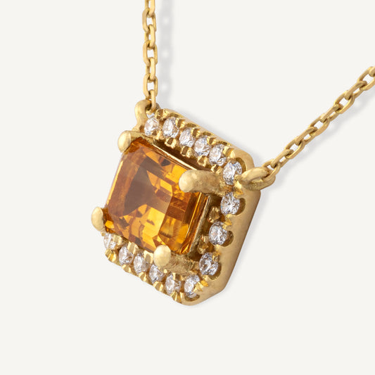 18K Yellow Gold Sparkling Citrine Frame Necklace with Natural Citrine and Diamonds