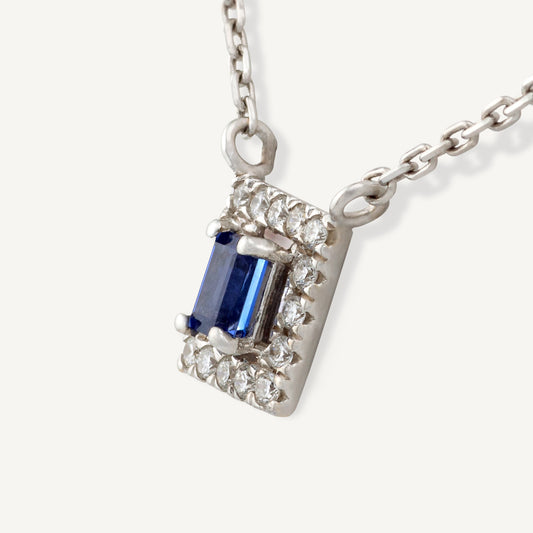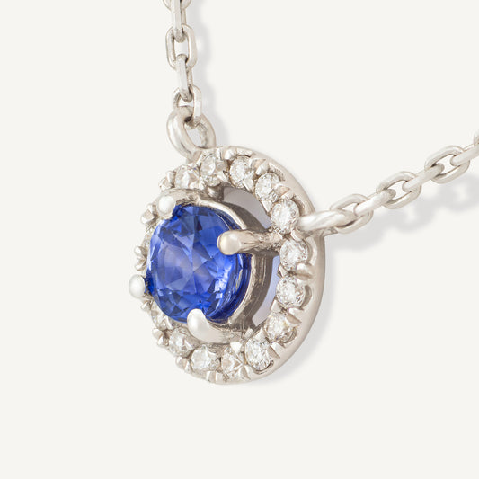 18K White Gold Royal Sapphire Necklace with Natural Blue Sapphires and Diamonds