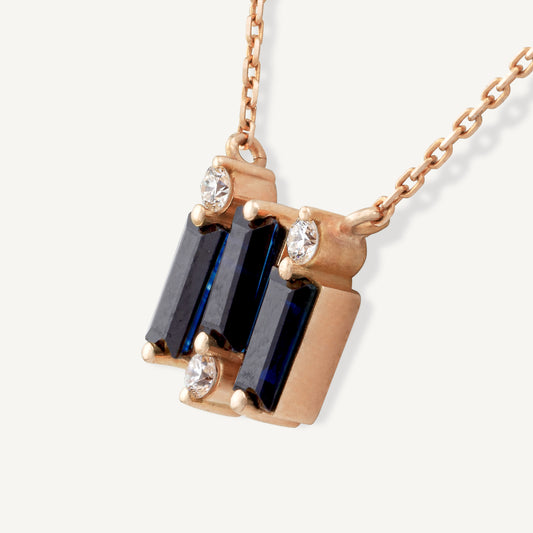 18K Yellow Gold Midnight Sapphire Necklace with Natural Blue Sapphires and Diamonds