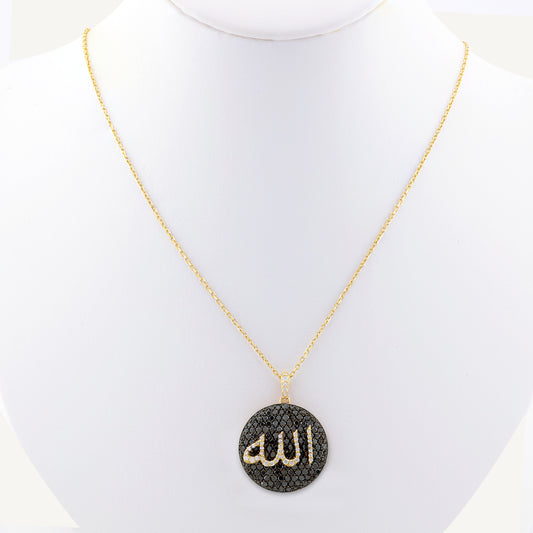 18K Yellow Gold Allah Diamond Necklace with Natural Diamonds
