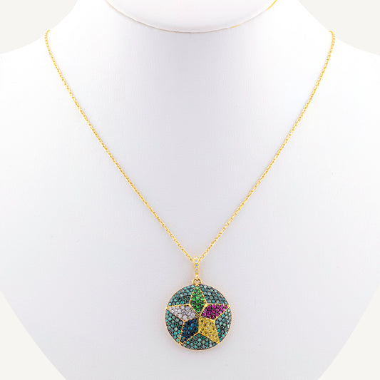 18K Yellow Gold Blue Diamond Druze Star Necklace with Natural Gemstones