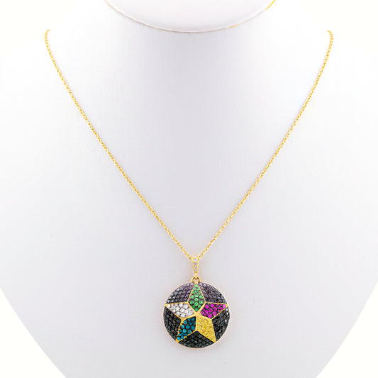 18K Yellow Gold Black Diamond Druze Star Necklace with Natural Gemstones