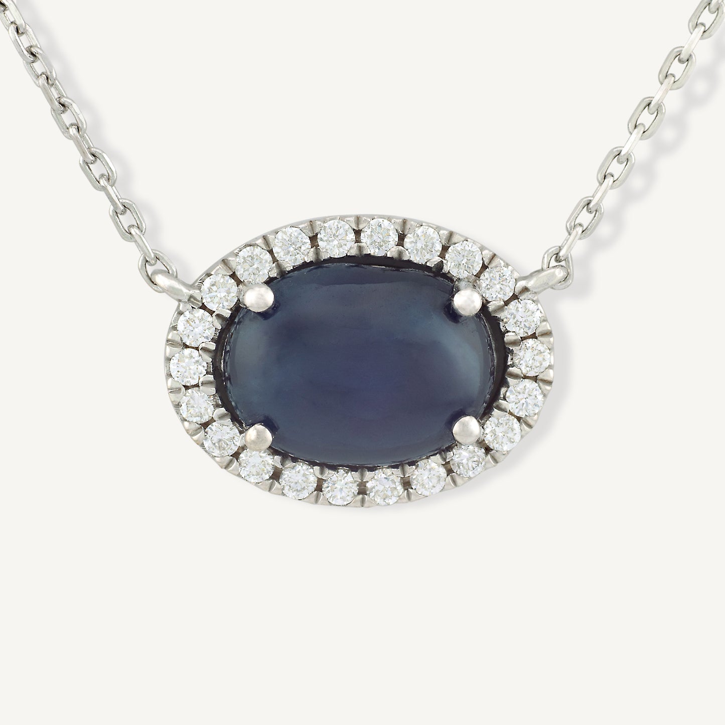 18K White Gold Cabochon Sapphire Necklace with Natural Cabochon Sapphire and Diamonds