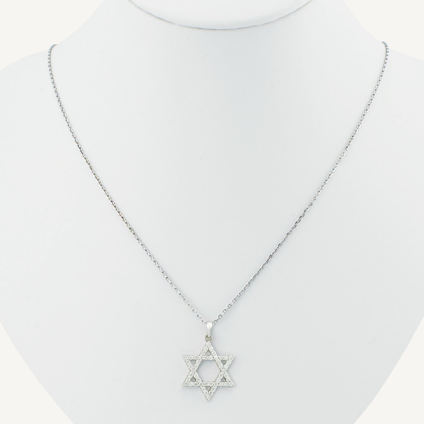 18K White Gold David’s Star Sparkling Diamond Necklace with Natural Diamonds