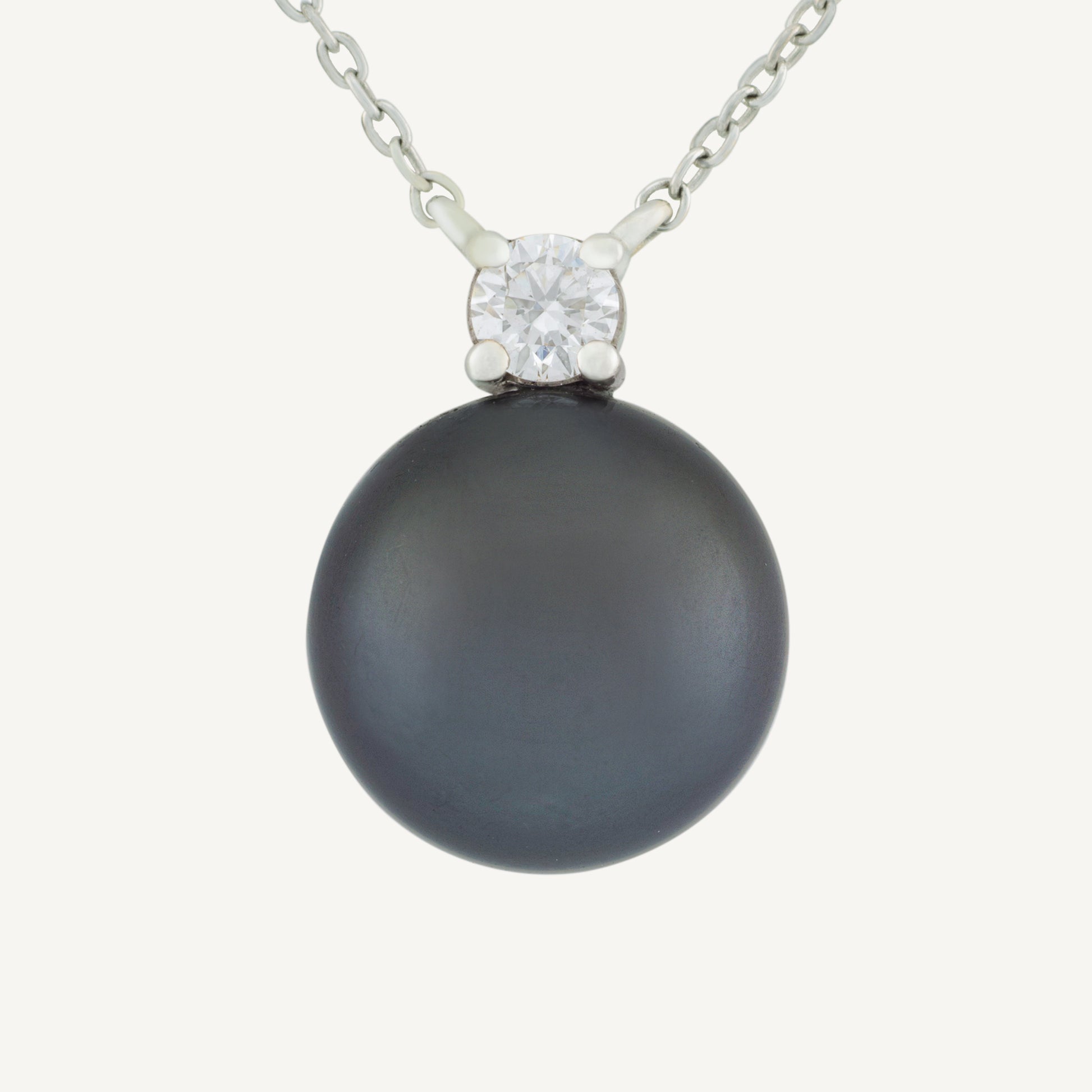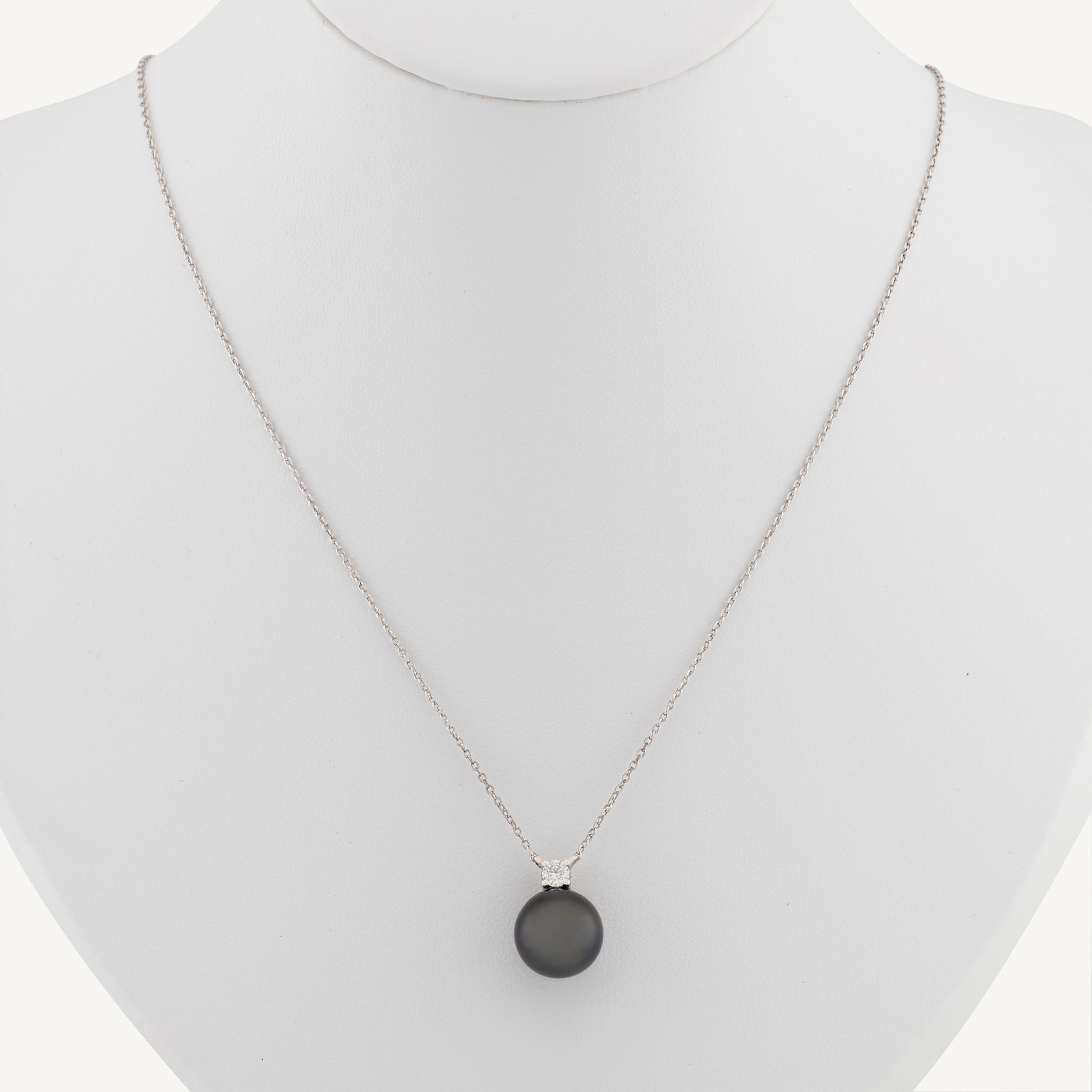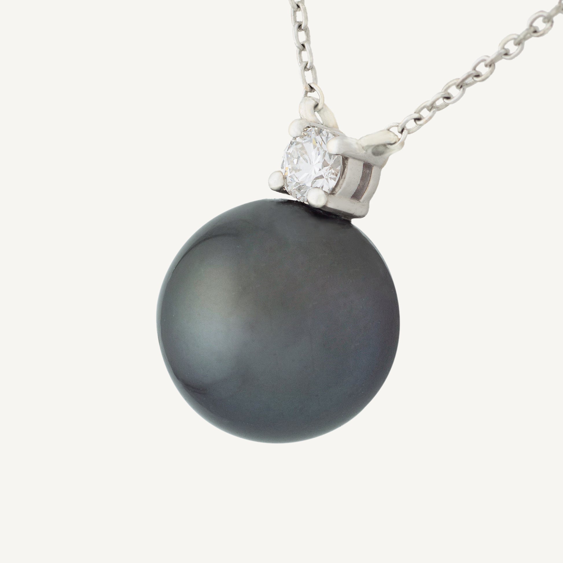 18K White Gold Tahitian Pearl and Diamond Necklace With Natural Tahitian Pearl and Diamond