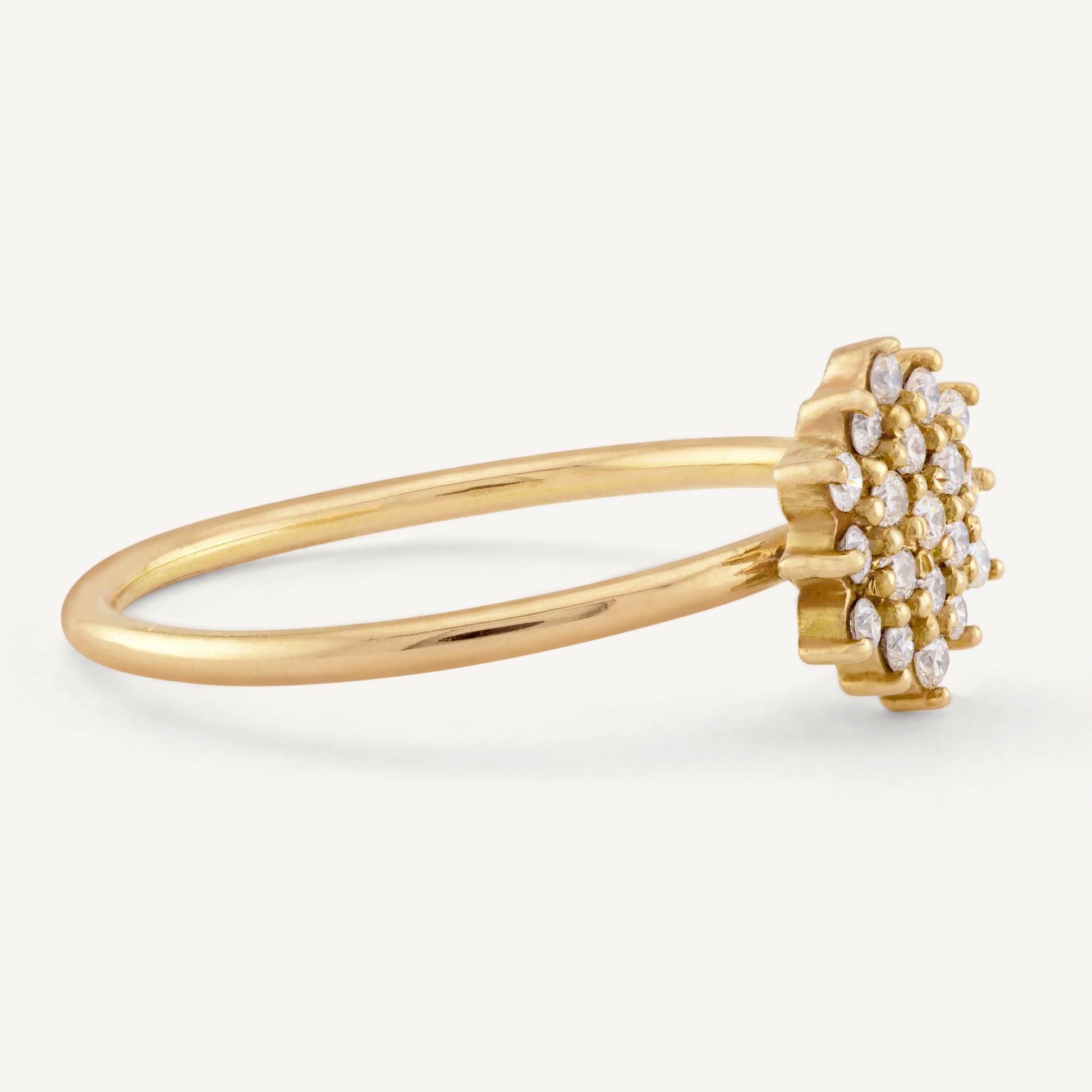 The 18K Yellow Gold Diamond Cluster Ring features a radiant floral-inspired diamond cluster, expertly set in a lustrous yellow gold band. With its refined craftsmanship and timeless elegance, this ring adds a touch of brilliance and sophistication to any look.