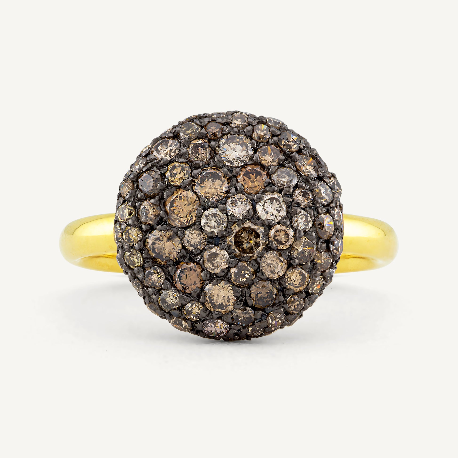 18K Yellow Gold Domed Diamond Ring with Natural Diamonds
