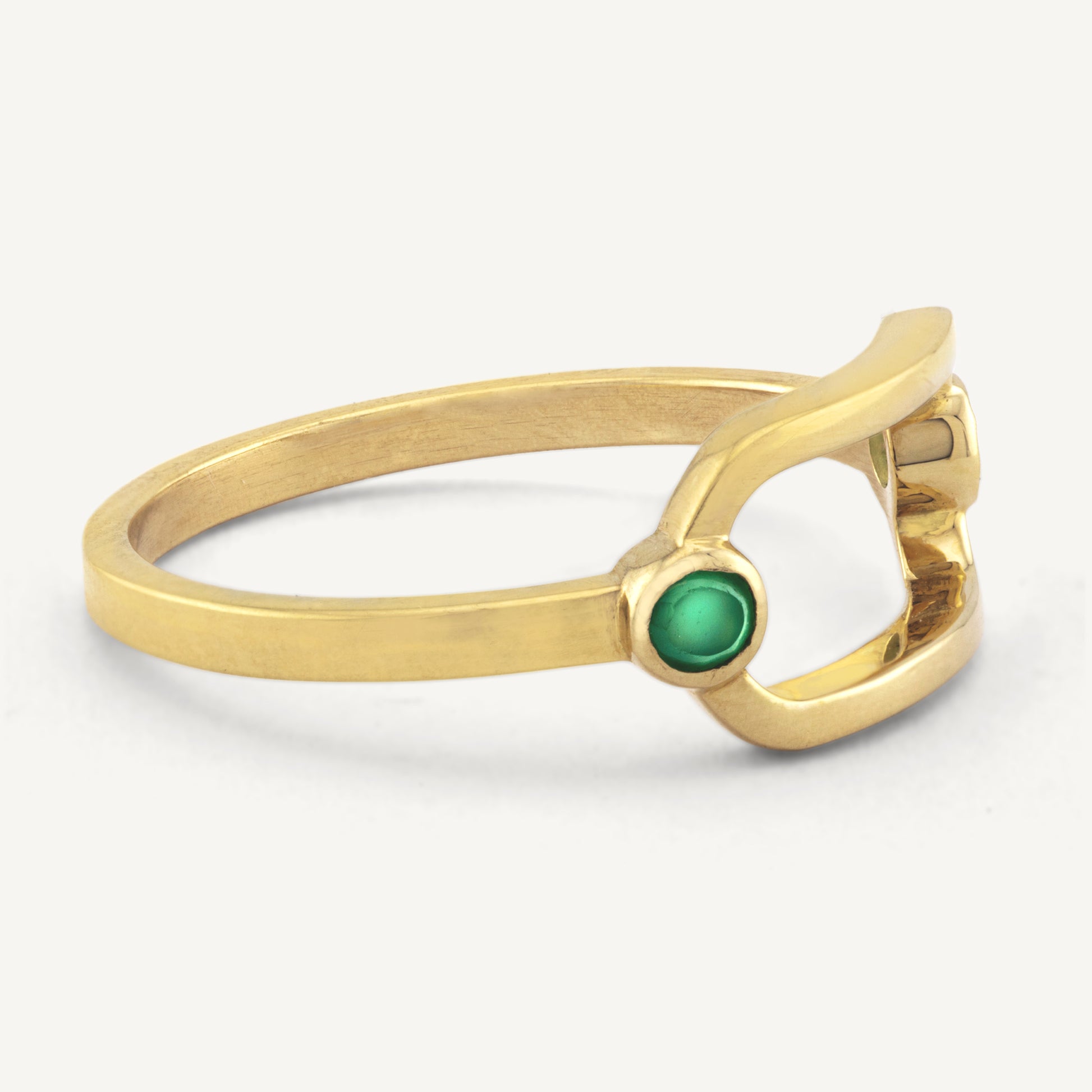 18K Yellow Gold Double Emerald Ring with Natural Green Emeralds