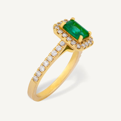 18K Yellow Gold Emerald Verdant B Diamond Ring with Natural Emerald and Diamonds