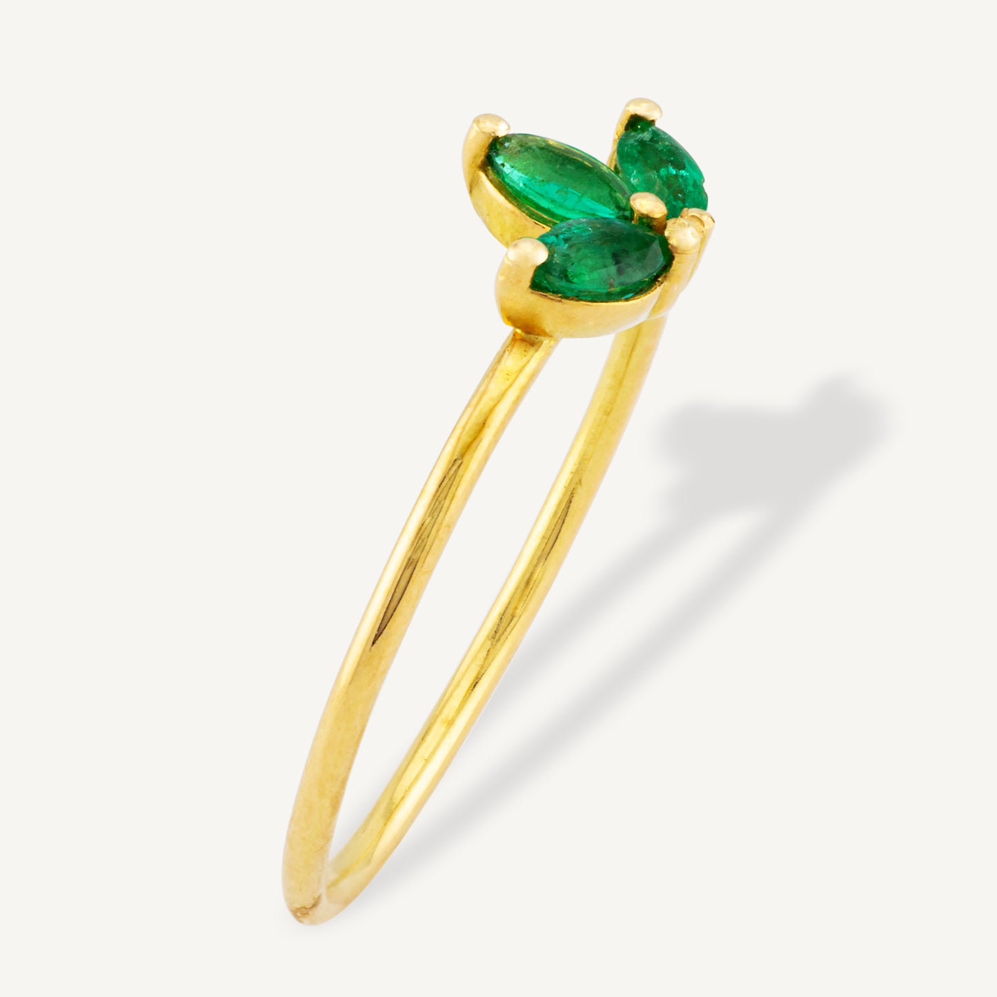 18K Yellow Gold Evergreen Emerald Symphony Ring with Natural Emeralds
