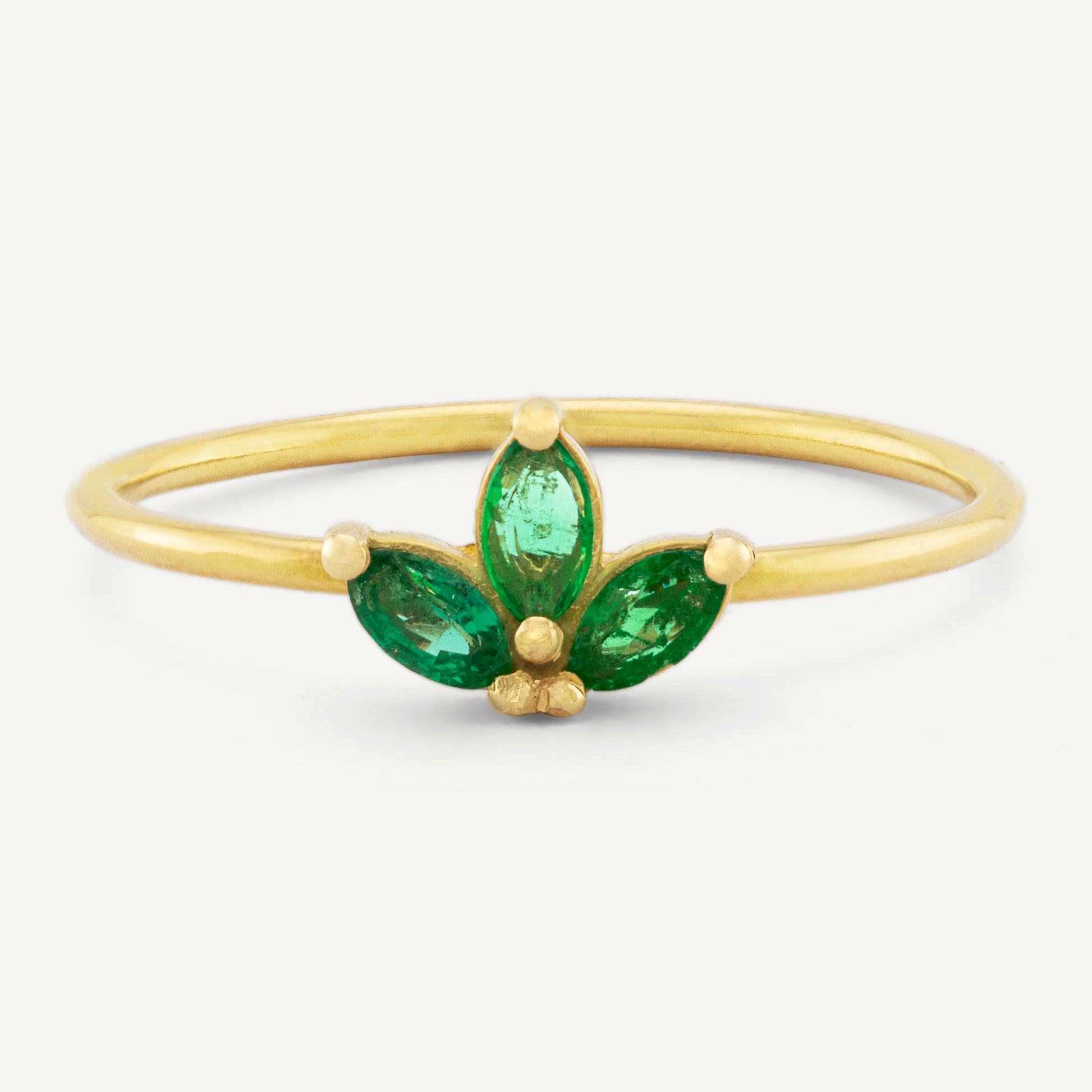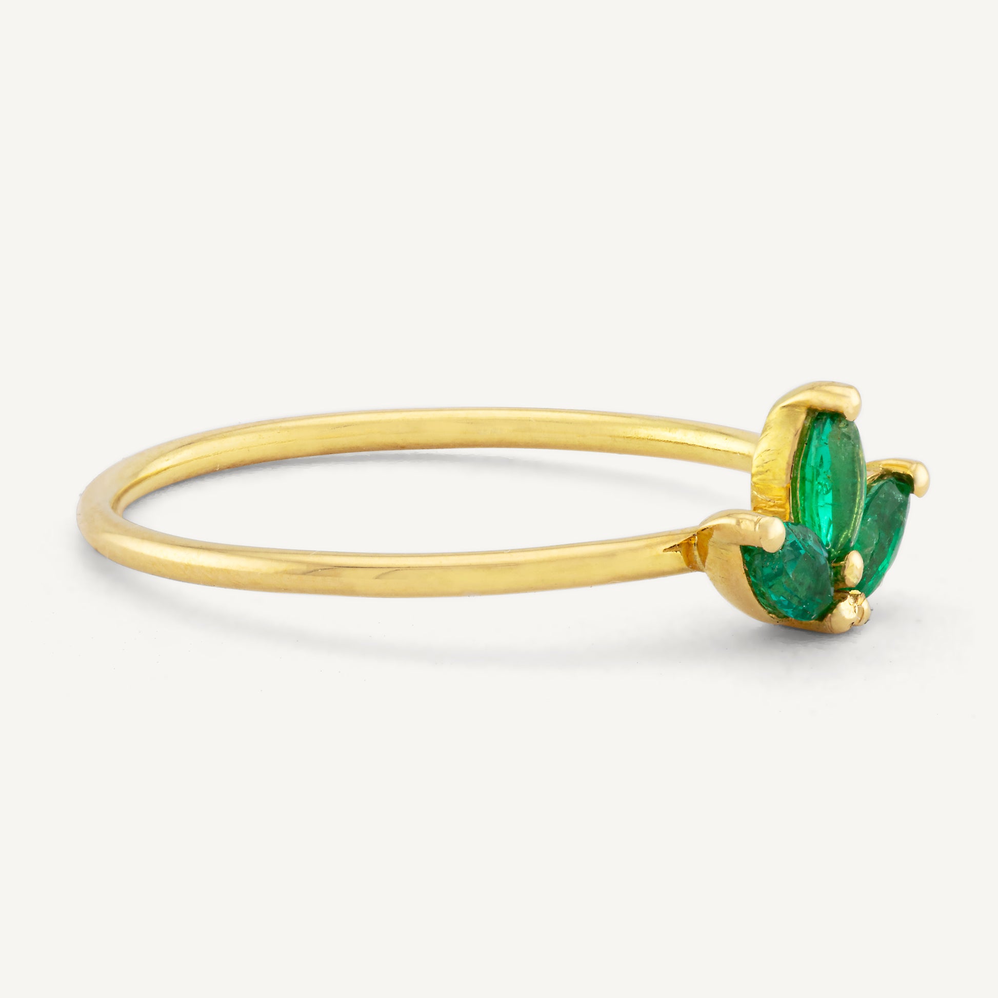 The 18K Yellow Gold Evergreen Emerald Symphony Ring showcases vibrant natural emeralds artfully arranged within a lustrous yellow gold setting. With its elegant design, this ring exudes timeless luxury and sophistication, making it the perfect statement piece for any occasion.