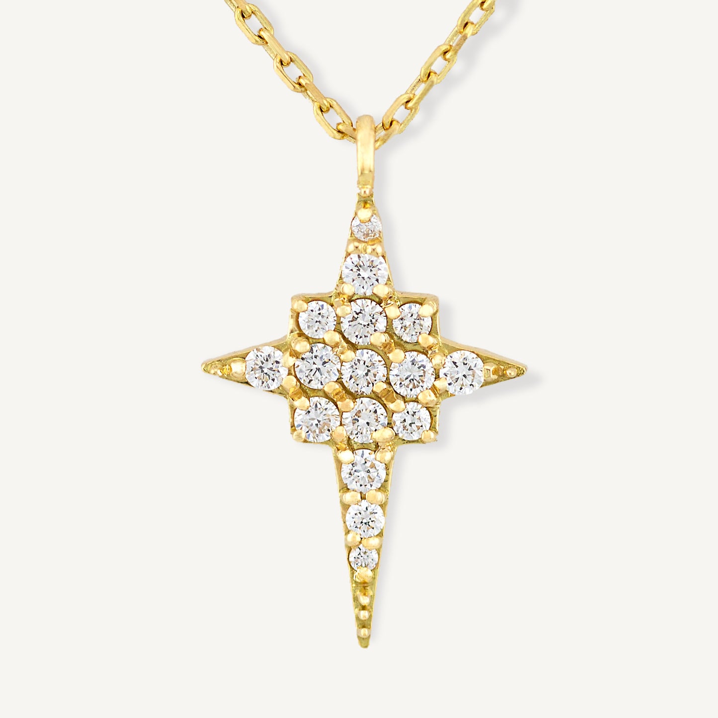The 18K Yellow Gold Glimmering Grace Charm Necklace features a beautifully crafted charm, elegantly adorned with dazzling white diamonds. With its divine design, this necklace adds a radiant touch of sophistication to any outfit.