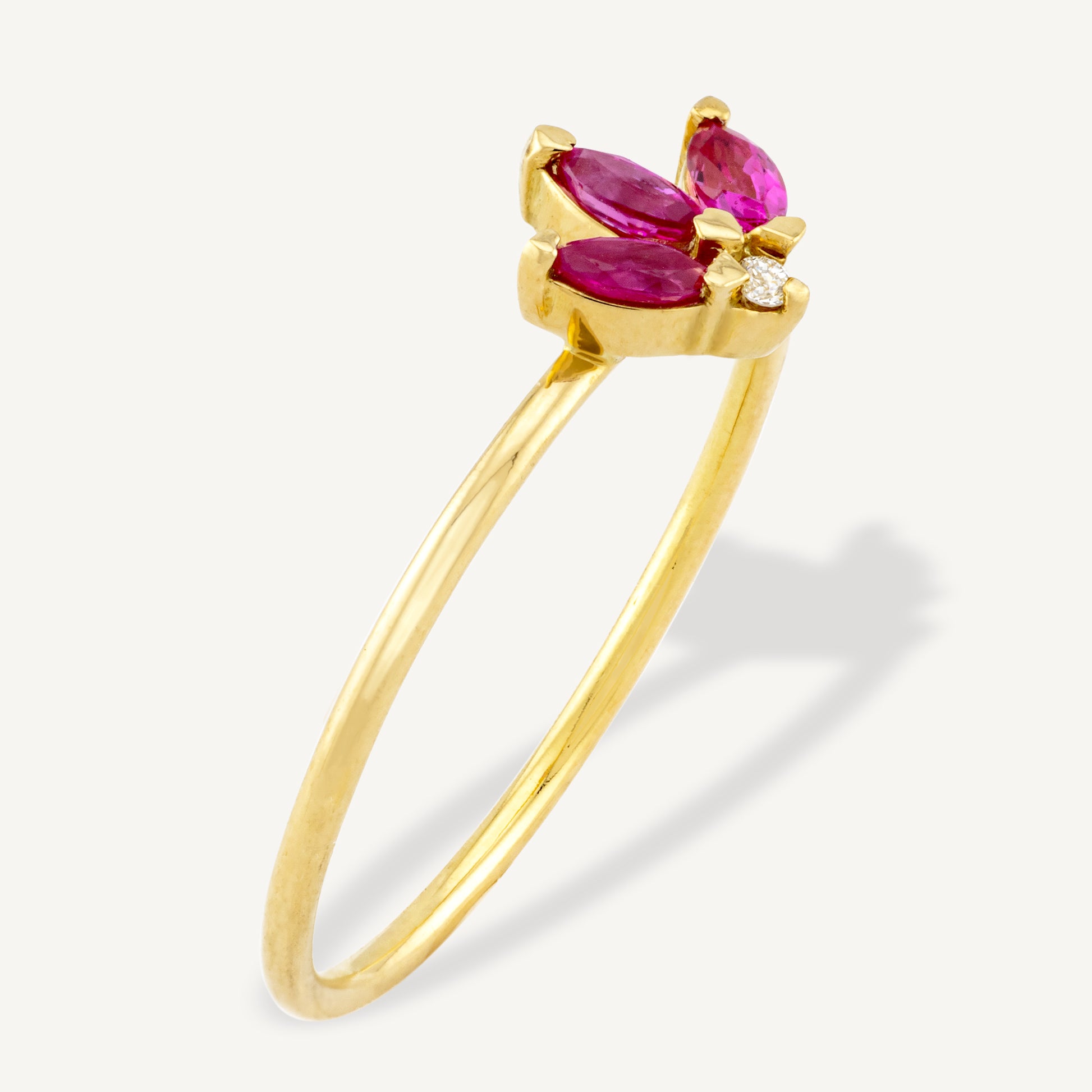 18K Yellow Gold Petaled Ruby Ring with Natural Red Rubies and Diamonds